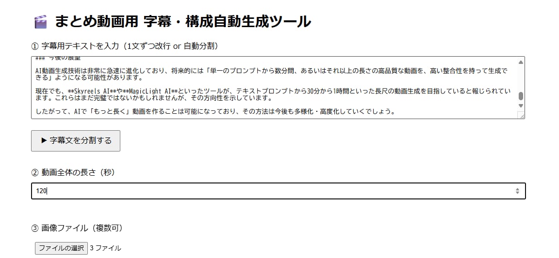 # まとめ動画用 字幕・構成自動生成ツールのご案内!